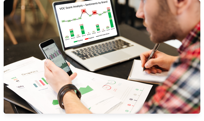 QEval's state-of-the-art VOC analytics software provides a comprehensive view of your customers' sentiments and needs. By leveraging advanced algorithms and machine learning, our platform helps you: